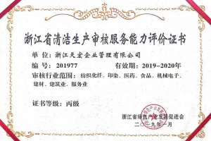 浙江省清潔生產審核服務能力評價證書